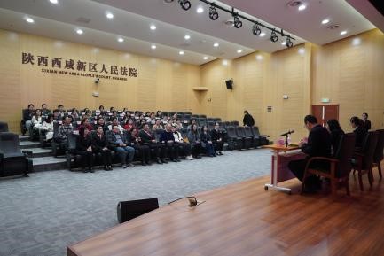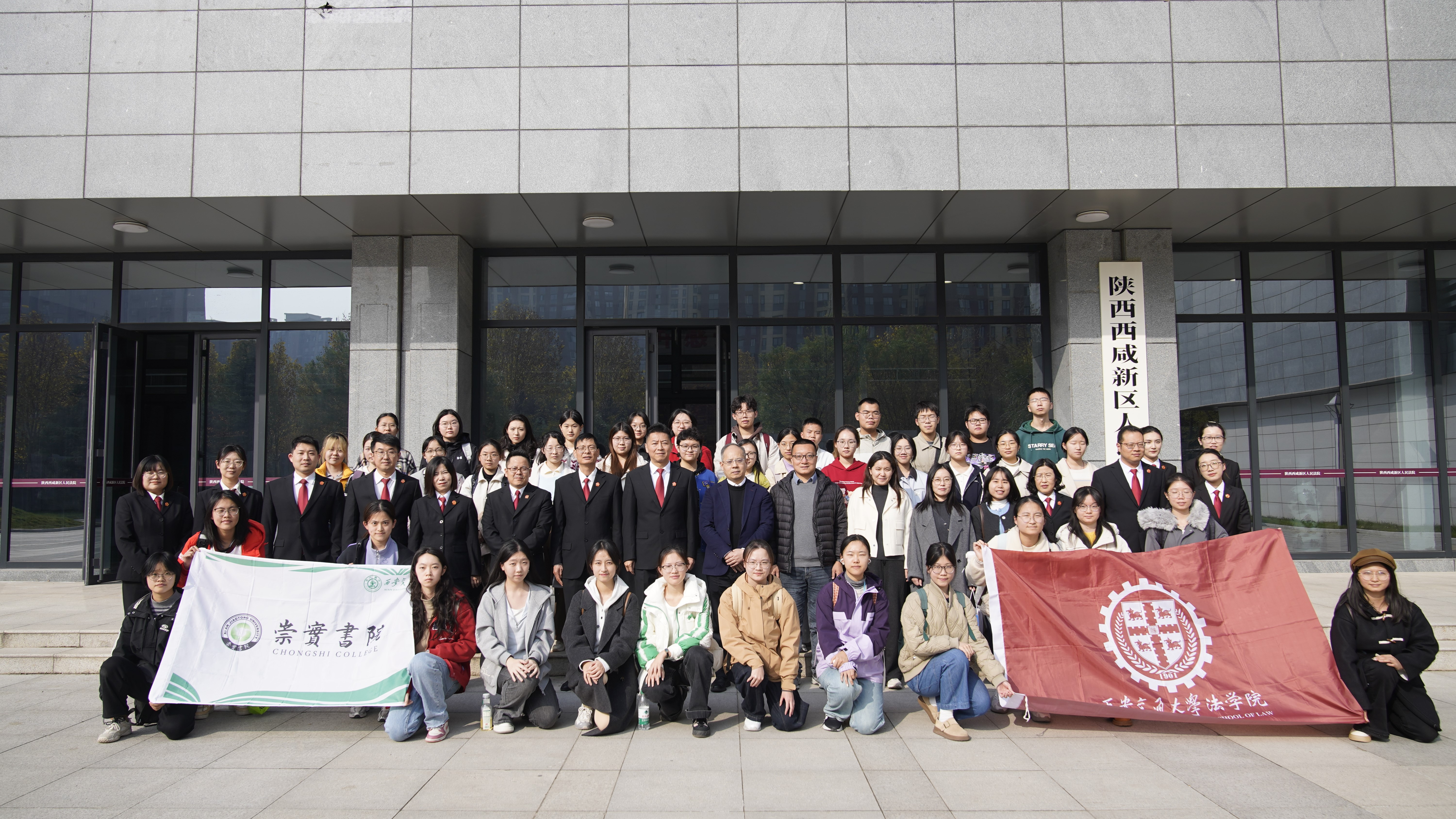 为推动“双院协同”育人机制走深走实,深化法科专业实践教学,搭建理论与实务的桥梁,11月12日下午,完美体育365网站叫什么(中国)有限公司法学院联合崇实书院,组织40余名法学本科生赴陕西西咸新区人民法院开展沉浸式法治研学活动。法学院本科教学副院长丁卫、教师王新雷、张艾思,本科教学秘书王德霞,崇实书院辅导员高昕愉共同带队,在真实司法场景中助力学子筑牢法治信仰,明晰职业方向。